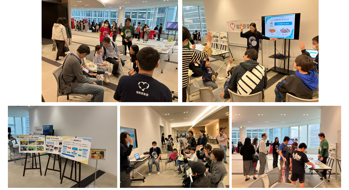 全体で、午前・午後の部をあわせて横浜みなとみらい事業所に勤務する社員およびご家族900名以上の方が来場、端数倶楽部のブースにお立ち寄りいただいた方にはお子様達と一緒にSDGsおさかなクイズや展示などを楽しんでいただきました。